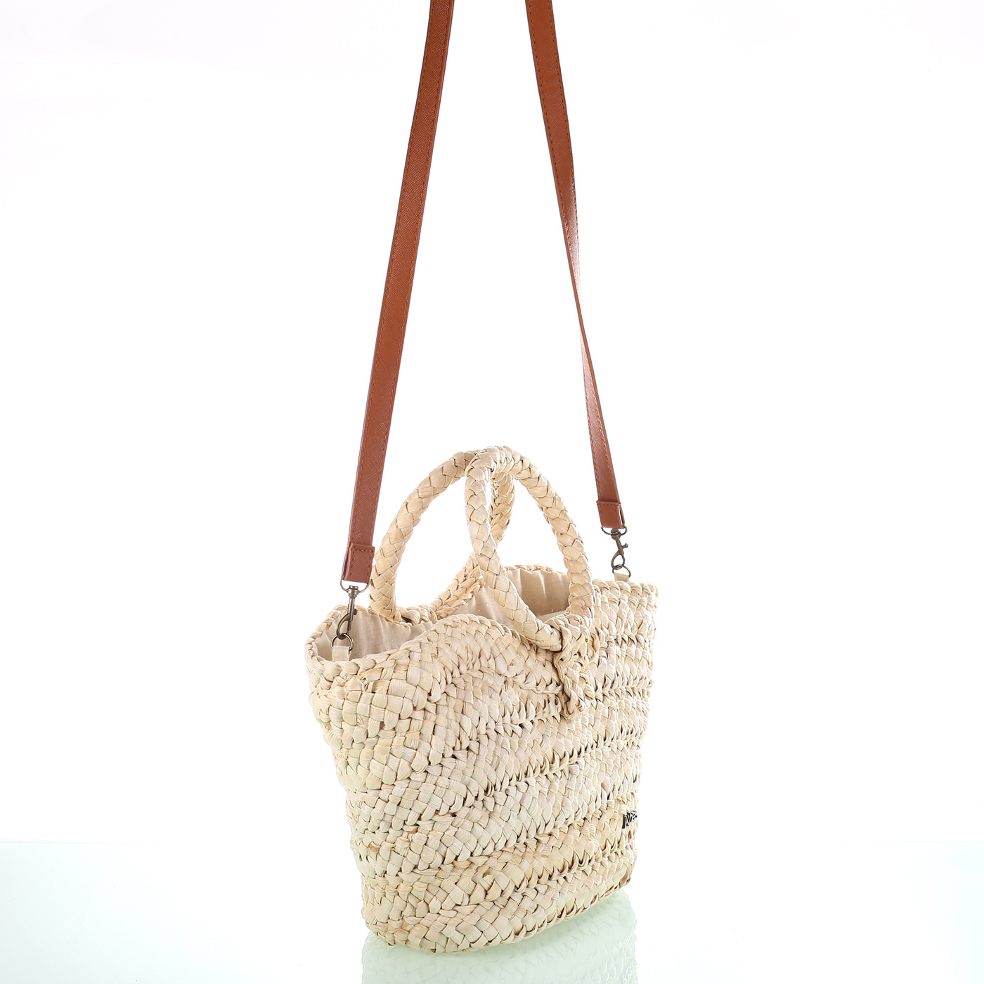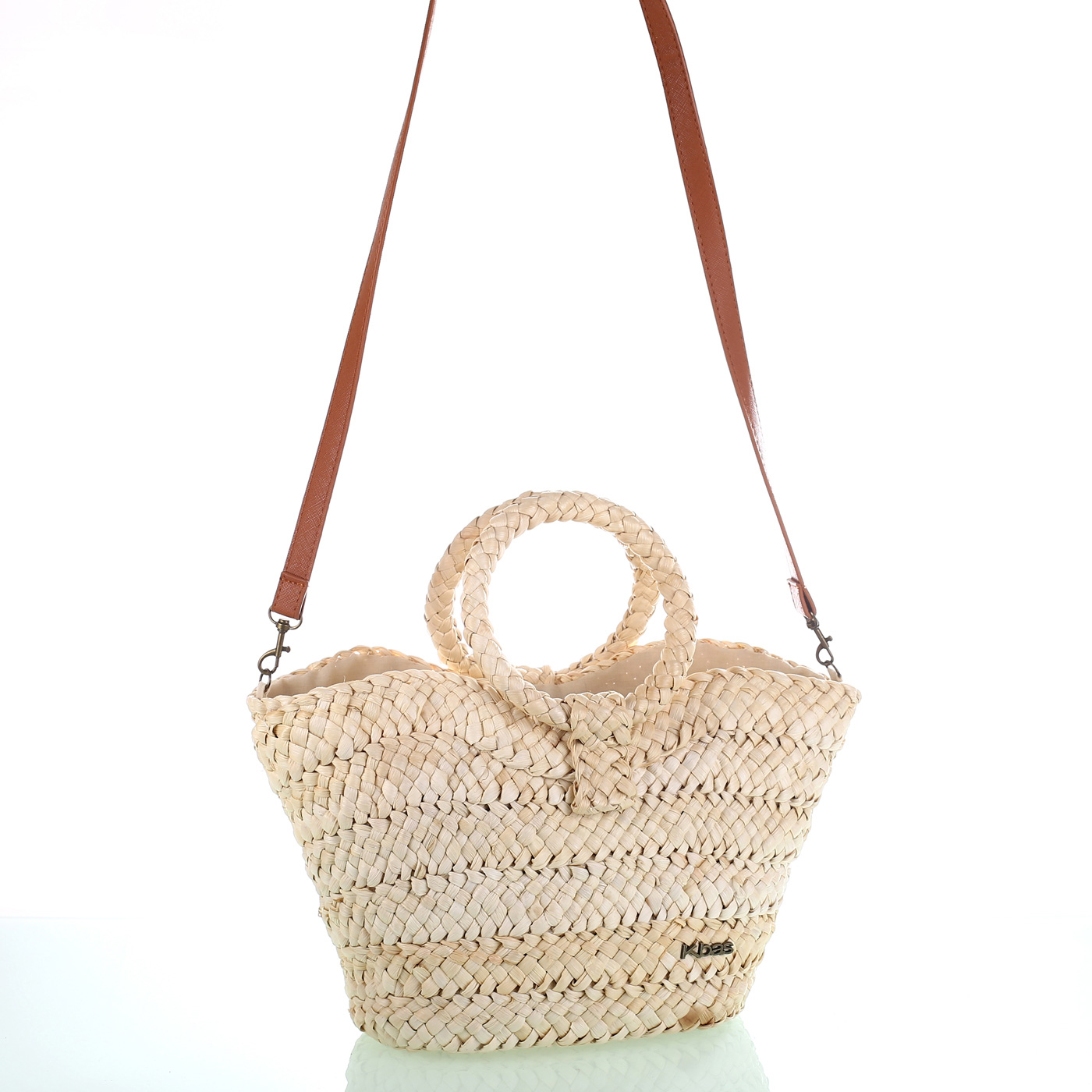 Dámská slaměná taška Kbas není jen taková obyčejná slaměná taška. Zdobí ji dvě kulaté madla, díky kterým tašku můžete nosit v ruce, ale je doplněna io kožený popruh, takže si ji kdykoliv můžete převěsit přes rameno. Tato praktická taška z přírodní slámy v světlé barvě je dostatečně prostorná a uzavírá se na zip. Má ráda nejen dovolenkové destinace, ale i rušné večerní město.